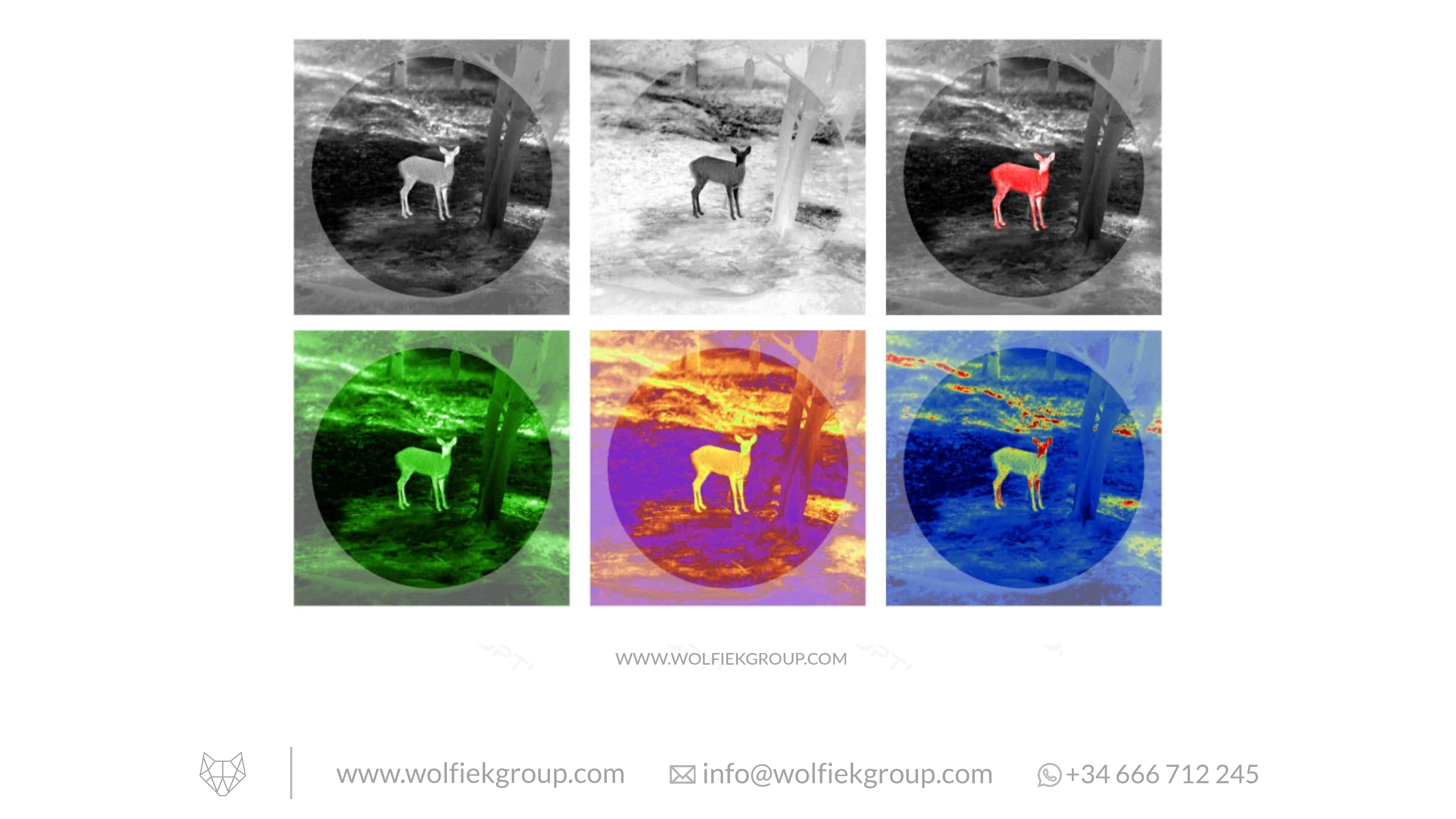 - Color Palettes: white hot, black hot, red hot, green hot, iron red, blue hot